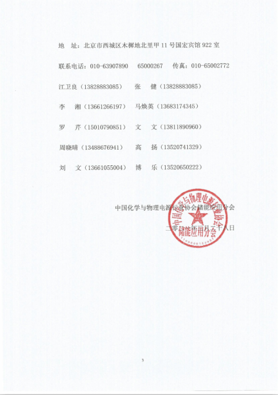 中國化學(xué)與物理電源行業(yè)協(xié)會儲能應(yīng)用分會秘書處