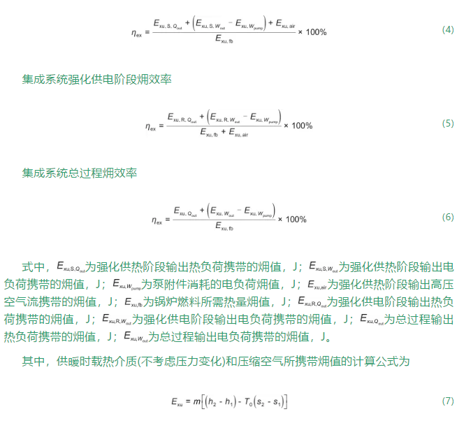 式中,WESP,out為強(qiáng)化供熱階段的輸出功率,W;WERP,out為強(qiáng)化供電階段的輸出功率,W;Wout為總過程的輸出功率,W;Wpump為泵附件耗功,W;QESP,out為強(qiáng)化供熱階段的輸出熱負(fù)荷,W;QERP,out為強(qiáng)化供電階段的輸出熱負(fù)荷,W;Qout為總過程的輸出熱負(fù)荷,W;Qfb為燃料總消耗的熱值,W;Qair為壓縮空氣所攜帶的熱值,W。