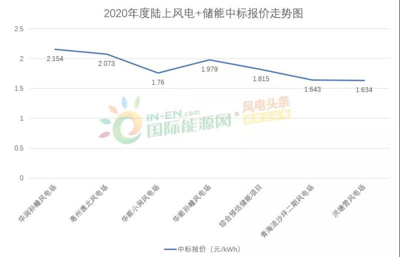 據(jù)國際能源網(wǎng)/風(fēng)電頭條(微信號(hào):wind-2005s)此前統(tǒng)計(jì),2020年開標(biāo)的7個(gè)“風(fēng)電+儲(chǔ)能”項(xiàng)目中,從年初的華潤濉溪孫疃風(fēng)電場到年末的洪塘營風(fēng)電場項(xiàng)目,儲(chǔ)能建設(shè)單價(jià)從2.154元/kWh下降至1.634元/kWh,降幅達(dá)到24.14%。