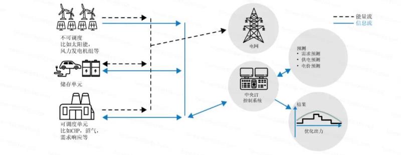中央控制系統(tǒng)或分布式能源管理系統(tǒng)(DEMS)發(fā)送優(yōu)化的調(diào)度指令給可調(diào)度的分布式電源。
