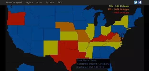 整個得州的氣溫一直處于0℃以下,溫度為-3.9℃至-26℃。歷史性的低溫讓全州電力短缺,得州處于最高能源應(yīng)急級別,創(chuàng)下了創(chuàng)紀(jì)錄的6920萬千瓦冬季用電高峰——人均超過2千瓦。很多地區(qū)不得不滾動供電,至少250萬戶家庭停電。