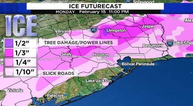 哈里斯縣法官Lina Hidalgo和休斯頓市長Sylvester Turner都強(qiáng)調(diào)可能會出現(xiàn)電線倒塌、樹枝斷裂和道路因冰而無法通行的情況。Lina Hidalgo在談到冬季風(fēng)暴時也曾說得州的基礎(chǔ)設(shè)施不是為這樣的風(fēng)暴而建的。政府建議周五和周六前往超市購買物品囤積以防停電,并且預(yù)警當(dāng)氣溫低于冰點(diǎn)時,管道可能會爆裂。