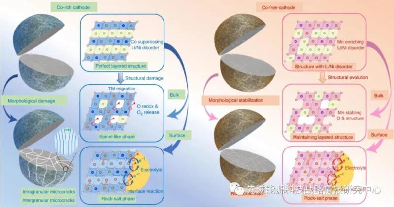圖1 富鈷和無鈷正極結(jié)構(gòu)演化機制