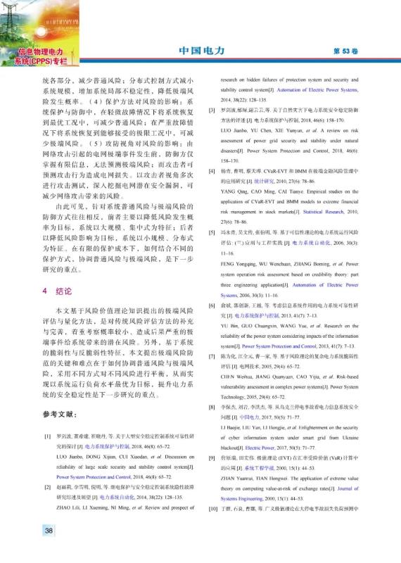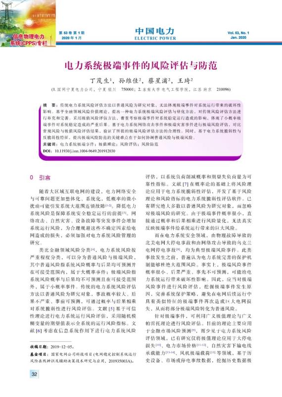 DING Maosheng, SUN Weijia, CAI Xingpu, et al. Risk assessment and prevention of extreme events in power systems[J]. Electric Power, 2020, 53(1): 32-39, 65.