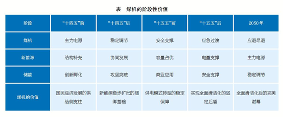 “十四五”后煤電發(fā)展情景描述。“十四五”后,市場(chǎng)需求發(fā)生了變化,各主體成長(zhǎng)階段逐步遞進(jìn),煤電在不同時(shí)期,會(huì)體現(xiàn)出不同的特性。以下試著從不同角色的市場(chǎng)性表征來(lái)描繪煤機(jī)的階段性價(jià)值(見(jiàn)表)。