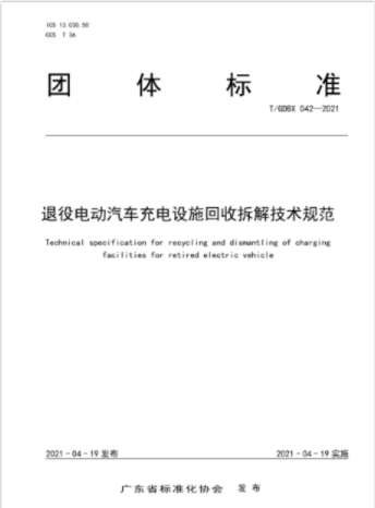 對(duì)此,4月19日,廣東省標(biāo)準(zhǔn)化協(xié)會(huì)發(fā)布團(tuán)體標(biāo)準(zhǔn)《退役電動(dòng)汽車充電設(shè)施回收拆解技術(shù)規(guī)范》(以下簡(jiǎn)稱“該團(tuán)標(biāo)”),為日漸增多的電動(dòng)汽車充電設(shè)施的回收拆解提供技術(shù)支撐。