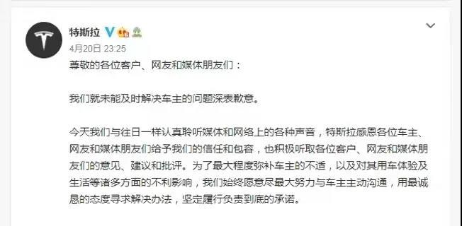 雖然,4月20日深夜23:25,特斯拉在輿論壓力面前終于發(fā)布了致歉聲明,但前幾日的“絕不妥協(xié)”依然言猶在耳,將此前已經(jīng)持續(xù)了一段時間的特斯拉各種“門”事件再次推上高潮。