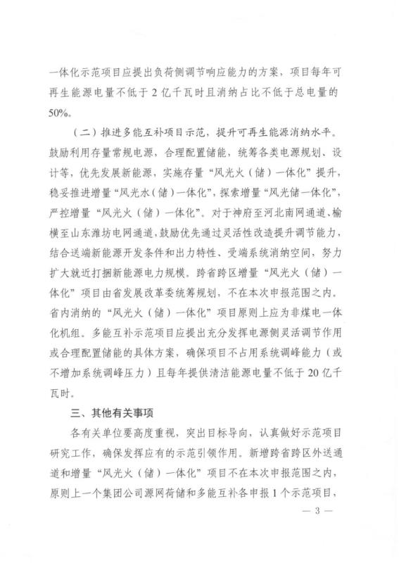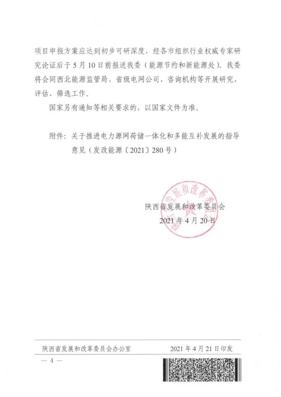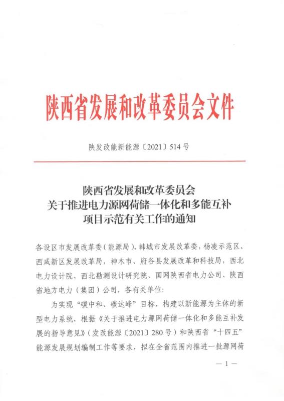 中國儲能網(wǎng)訊:4月20日,陜西省發(fā)改委發(fā)布《關(guān)于推進電力源網(wǎng)荷儲一體化和多能互補項目示范有關(guān)工作的通知》。文件提出要求:源網(wǎng)荷儲一體化示范項目應提出負荷側(cè)調(diào)節(jié)響應能力的方案,項目每年可再生能源電量不低于2億千瓦時且消納占比不低于總電量的50%;多能互補示范項目應提出充分發(fā)揮電源側(cè)靈活調(diào)節(jié)作用或合理配置儲能的具體方案,確保項目不占用系統(tǒng)調(diào)峰能力(或不增加系統(tǒng)調(diào)峰壓力)且每年提供清潔能源電量不低于20億千瓦時。原則上一個集團公司源網(wǎng)荷儲和多能互補各申報1個示范項目,項目申報方案經(jīng)權(quán)威專家研究論證后于5月10日前報送。