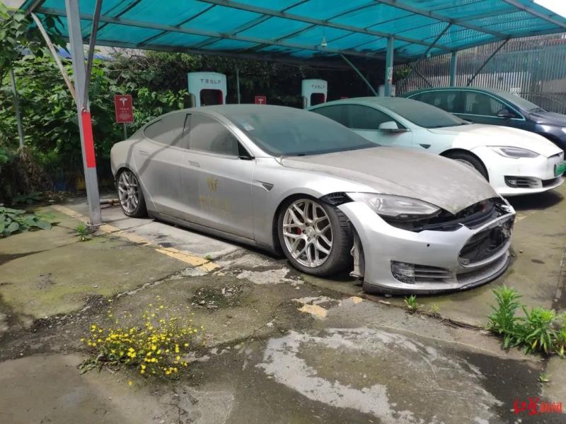 另外,有2輛特斯拉車身整潔,且有一輛正在充電,應(yīng)該處于正常使用中。