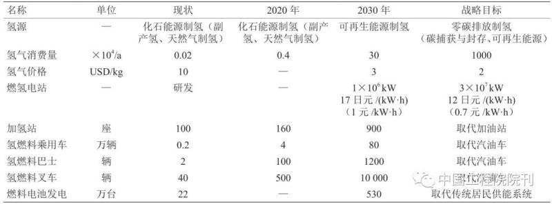 表2 日本氫能發(fā)展戰(zhàn)略目標(biāo)