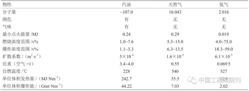 表1 汽油、天然氣、氫氣的物理化學(xué)性質(zhì)