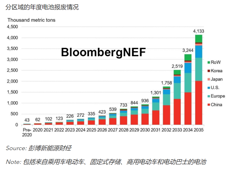 2035年新能源汽車和儲能領域的退役電池規(guī)模