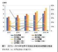 進(jìn)入本世紀(jì)以來,全球新能源發(fā)展迅猛,2019年,世界新能源消費(fèi)達(dá)到28.98艾焦耳(EJ),是2004年的7.5倍,全球占比從不到1%迅速上升至5%。聚焦近5年,不同地區(qū)新能源消費(fèi)均穩(wěn)定上升;從增速上來看,亞太及非洲地區(qū)始終保持最高增速(見圖1)。從消費(fèi)量上看,亞太地區(qū)新能源消費(fèi)在其所有能源消費(fèi)中的占比與歐美地區(qū)相比仍有較大差距,預(yù)計(jì)2020年后將仍是該領(lǐng)域的增長主力。