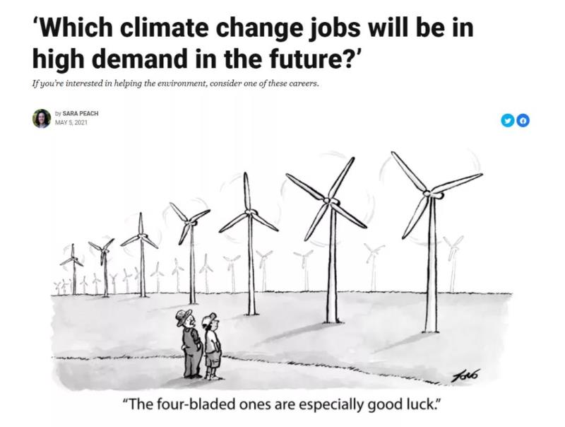 美國yaleclimateconnections.org網(wǎng)站發(fā)表文章,回答了這樣一個(gè)問題:應(yīng)對氣候變化、走向碳中和,未來什么樣的職業(yè)會有很高的需求?