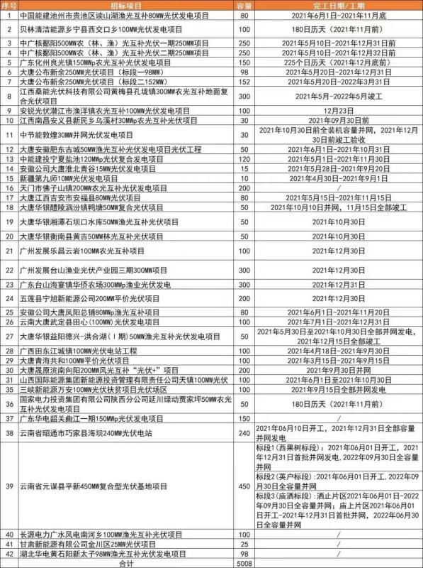 根據(jù)項(xiàng)目表格可以看出,本次統(tǒng)計(jì)的項(xiàng)目并網(wǎng)時(shí)間大部分集中于三、四季度。不過(guò)需要注意的一點(diǎn)是,雖然項(xiàng)目EPC招標(biāo)已經(jīng)啟動(dòng),并且在招標(biāo)公告中也明確了項(xiàng)目的并網(wǎng)和竣工時(shí)間,但是項(xiàng)目能否全容量順利并網(wǎng)仍受今年產(chǎn)業(yè)鏈價(jià)格波動(dòng)以及供應(yīng)情況的影響。