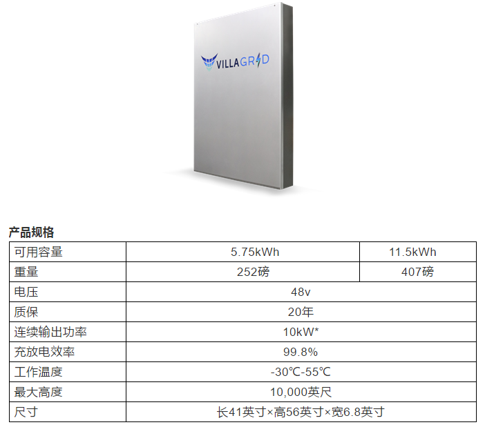 據(jù)外媒5月7日消息,VillaraEnergy Systems宣布推出其最先進(jìn)的家用電池儲(chǔ)能產(chǎn)品VillaGrid。VillaGrid儲(chǔ)能系統(tǒng)(ESS)是一種鈦酸鋰電池儲(chǔ)能系統(tǒng),質(zhì)保期20年,具有高安全性、長(zhǎng)壽命、高功率、高效率,全生命周期內(nèi)在最低使用成本條件下?lián)碛懈呖捎秒娏俊?