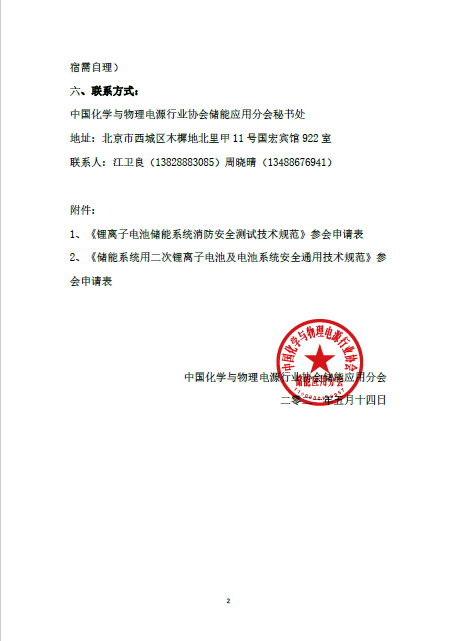 1、《鋰離子電池儲(chǔ)能系統(tǒng)消防安全測(cè)試技術(shù)規(guī)范》參會(huì)申請(qǐng)表