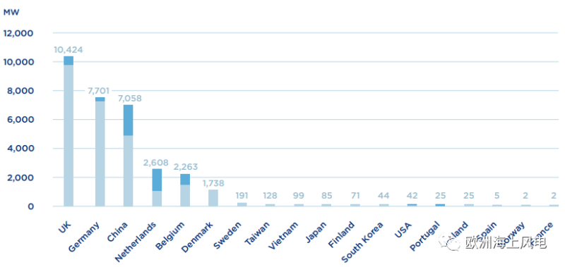 ▲各國(地區(qū))海上風(fēng)電在建裝機(jī)容量