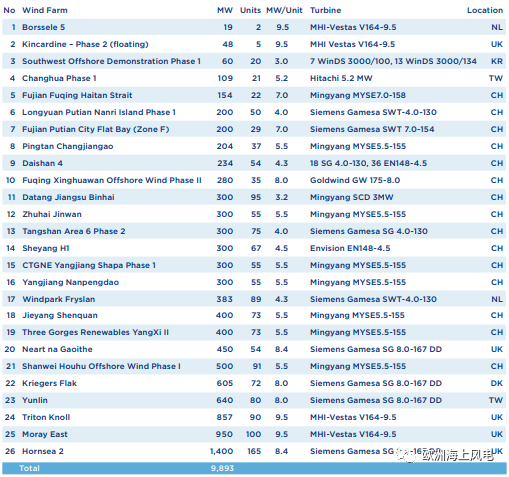 15個(gè)新增風(fēng)場主要來自歐洲和中國,其中最大的兩個(gè)風(fēng)場都在荷蘭投產(chǎn);