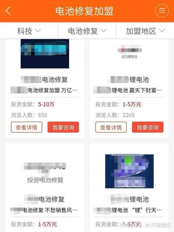 (網(wǎng)上有不少電池修復(fù)的加盟公司,一兩萬即可開店。)