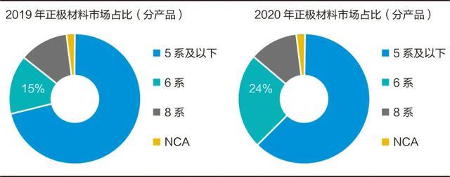 2020年,三元材料市場仍以5系及以下型號為主,高鎳8系材料占比為24%,多數(shù)材料的鈷含量在12%以上。