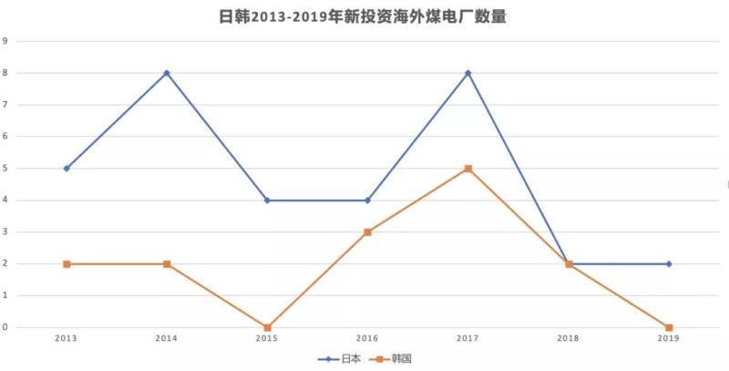近年來,日韓的新增海外煤電投資出現(xiàn)放緩跡象。“全球煤電公共融資追蹤”的數(shù)據(jù)顯示,2017年以來,兩國海外融資項目數(shù)量均持續(xù)下降,韓國2019年無新增投資項目。