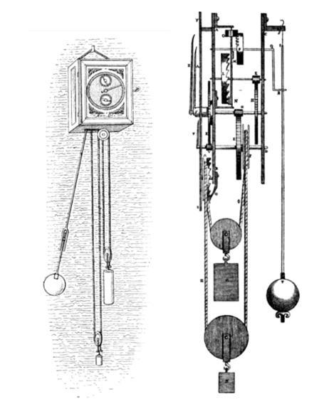 人類利用依賴重力進行儲能的想法與實踐并非新鮮事物,實際上,最早使用重力驅(qū)動機械的形式可追溯到克里斯蒂安·惠更斯(Christiaan Huygens)于 1656 年發(fā)明的擺鐘。在這套系統(tǒng)中,連接在皮帶輪或鏈輪上的鎖鏈所懸掛的重物是其機芯的重要組件,并由擒縱結(jié)構(gòu)控制配重的運動來為鐘擺提供動力,維持其前后擺動,這實際上已將重力勢能作為了整個設備的能量來源。這種以重力作為計時裝置的“電源”存在了數(shù)百年,并未被發(fā)條等其他機械結(jié)構(gòu)完全取代,直至使用電力驅(qū)動的石英鐘出現(xiàn)。