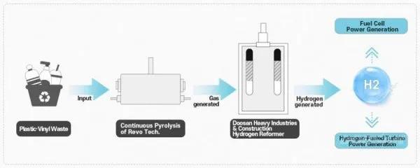 5月6日,斗山重工(DoosanHeavy Industries & Construction)與專門從事廢塑料連續(xù)熱解的RevoTech公司簽署了商業(yè)合作備忘錄,開始著手研究利用廢舊塑料生產(chǎn)氫氣的技術。