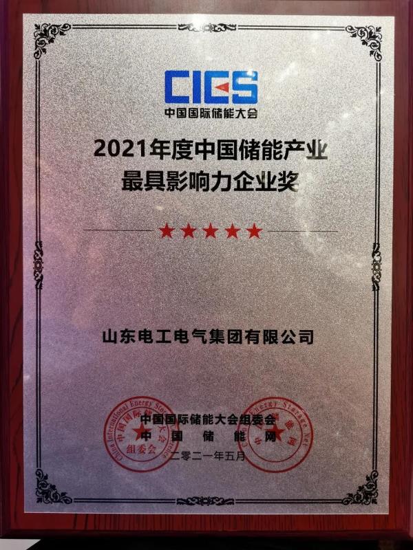 5月24日-26日,第十一屆中國國際儲能大會在杭州順利召開,在中國儲能產業(yè)最具影響力系列頒獎典禮上,山東電工電氣以優(yōu)異的產品競爭力和品牌影響力,榮獲2021年度中國儲能產業(yè)“最具影響力企業(yè)獎”和“最佳移動儲能技術解決方案獎”。