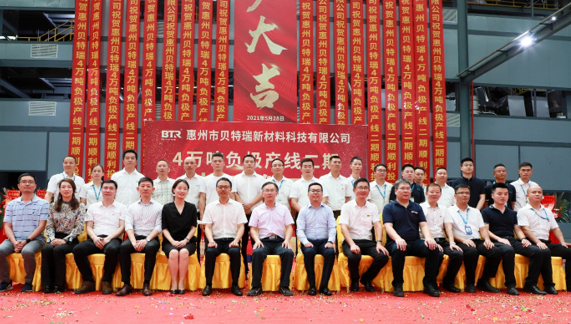 惠陽區(qū)鎮(zhèn)隆鎮(zhèn)黨委委員葉云峰、貝特瑞集團董事長賀雪琴,貝特瑞集團總經(jīng)理任建國、惠州貝特瑞董事長王培初、供應商代表等出席投產(chǎn)儀式并剪彩。