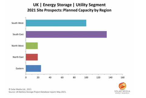 在英國儲能部規(guī)劃中,在10個站點(diǎn)部署的電池儲系統(tǒng)(總共686個站點(diǎn))在2021年開通運(yùn)營的可能性最大,這些儲能系統(tǒng)的總裝機(jī)容量將近300MW。