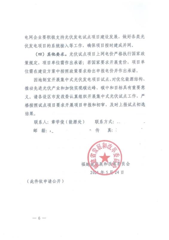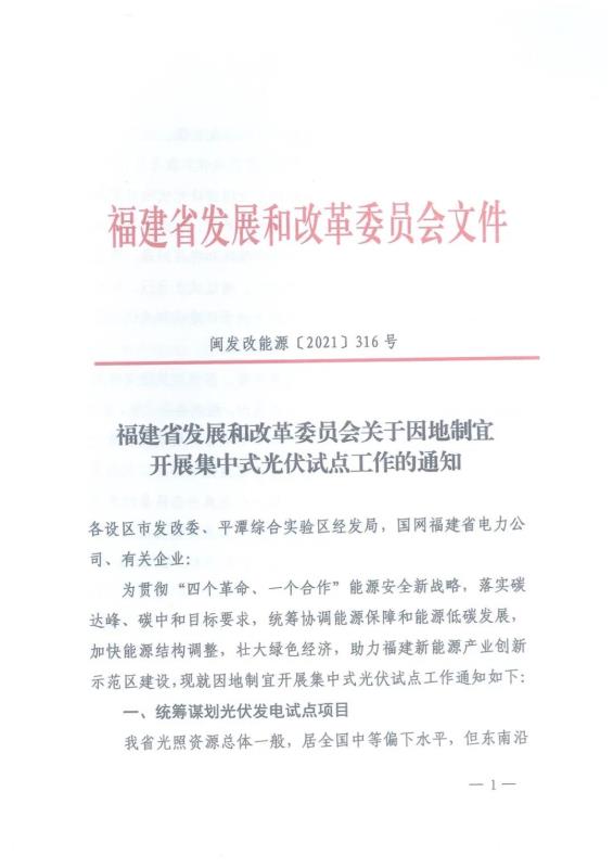 5月24日,福建省發(fā)改委下發(fā)《關于因地制宜開展集中式光伏試點工作的通知》,就集中式光伏電站試點項目的申報提出指導意見。