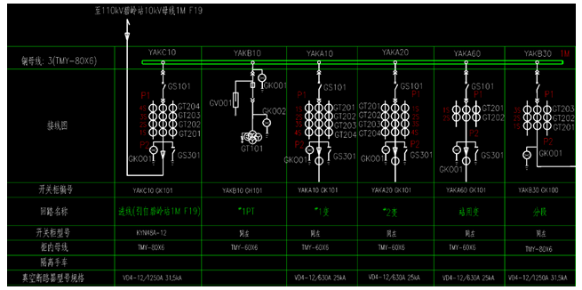 上圖為寶清電站接110kV碧嶺變電站的10kV母線1M,圖中主要反映本站從升壓變壓器至電網及站用電系統(tǒng)的電氣連接關系。