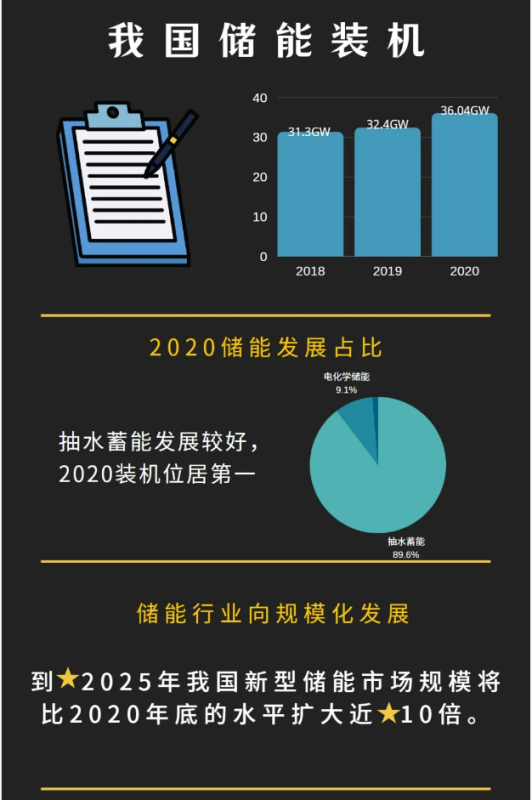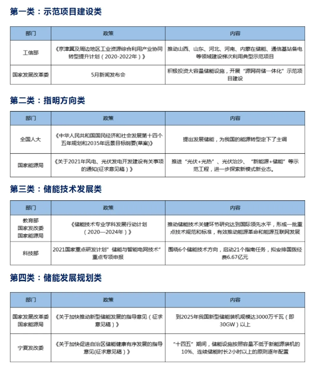 2021年4月21日,國家發(fā)革委和國家能源局聯(lián)合發(fā)布了《關(guān)于加快推動新型儲能發(fā)展的指導(dǎo)意見(征求意見稿)》。其中提出“到2025年,實現(xiàn)新型儲能從商業(yè)化初期向規(guī)?;l(fā)展轉(zhuǎn)變,新型儲能裝機(jī)規(guī)模達(dá) 3000 萬千瓦以上;到2030年,實現(xiàn)新型儲能全面市場化發(fā)展”的主要目標(biāo)。”