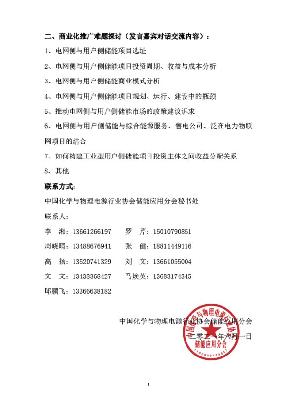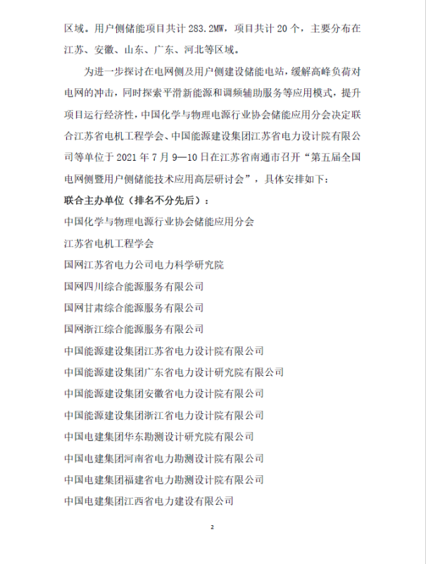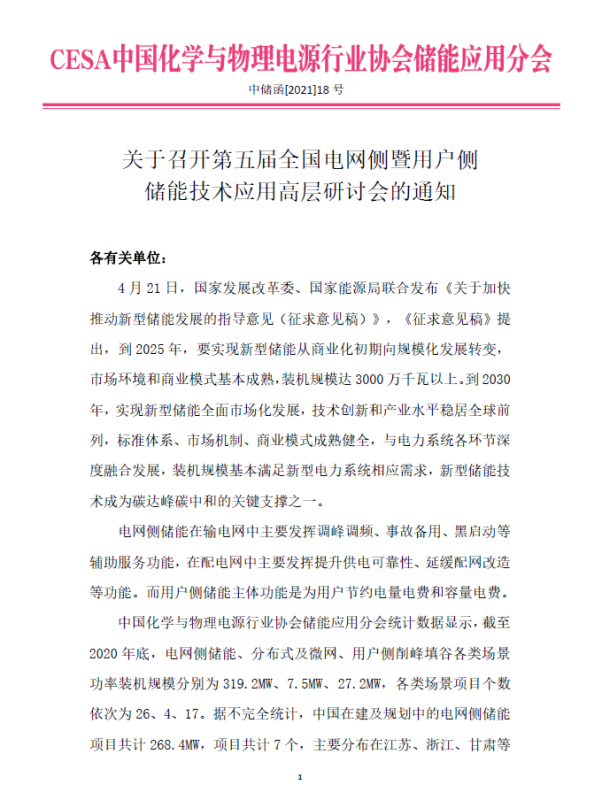 關(guān)于召開第五屆全國(guó)電網(wǎng)側(cè)暨用戶側(cè)儲(chǔ)能技術(shù)應(yīng)用高層研討會(huì)的通知