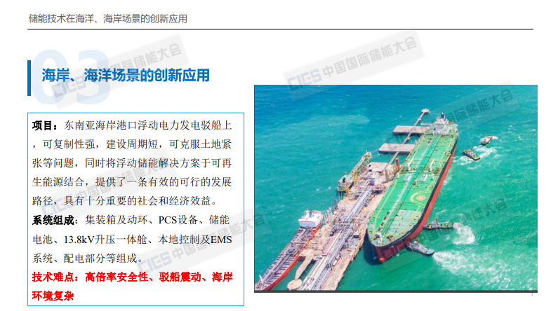 我們的目標(biāo)是致力于細(xì)分市場(chǎng)領(lǐng)域的標(biāo)準(zhǔn)化,其中一個(gè)場(chǎng)景就是我們看到一個(gè)島嶼或者一個(gè)港口的場(chǎng)景,左側(cè)的圖也比較清晰,它的特點(diǎn)是什么?要求提供高可靠性的供電系統(tǒng),高倍率的性能要求,另外還有就是系統(tǒng)布置在駁船上,場(chǎng)地有限,對(duì)震動(dòng)的要求是非??量痰?。
