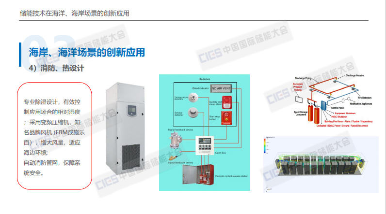在系統(tǒng)層面,在集裝箱上,要求到駁船的振動(dòng)性,從系統(tǒng)上減少駁船對(duì)它的影響。在電池的PACK、電池架和集裝箱作為整個(gè)整體的固定,包括緩沖的設(shè)計(jì),來(lái)提升抗振動(dòng)的特性。再到電池PACK和電池架,也做了很多的緩沖處理,主要是一些上下振動(dòng)方面的設(shè)計(jì)。另外一塊就是腐蝕性的問(wèn)題,在海島的環(huán)境下,我們采用C5的標(biāo)準(zhǔn),包括噴漆的特定要求,來(lái)滿足防腐的設(shè)計(jì)需要。