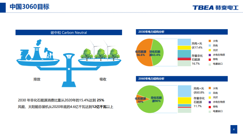 新型電力系統(tǒng),大家比較熟悉的就是“雙碳”目標的提出,這個目標的提出對大家有什么影響呢?對我們來說,新能源好像挺火的,從數(shù)字上來說,就是2030年非化石能源從2020年的15.4%達到25%,風能、太陽能總裝機從2020年底的4.6億千瓦達到12億千瓦以上。