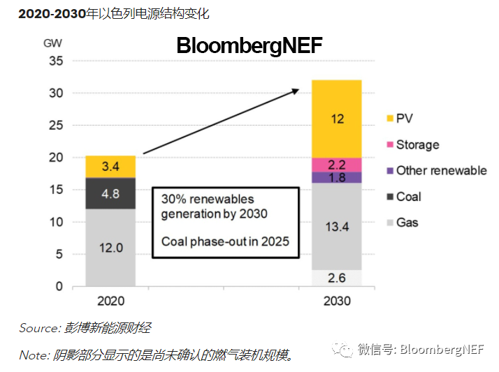 以色列的目標是將光伏裝機規(guī)模從目前的3.4GW提高至2030年的12GW。電力監(jiān)管機構預計,到2030年,以色列需部署2GW/8GWh的儲能,電網(wǎng)才能容納12GW的光伏電源。