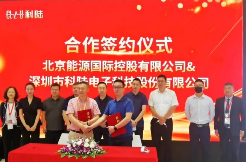 2021年6月4日,深圳市科陸電子科技股份有限公司(以下簡(jiǎn)稱(chēng)“科陸”)與北京能源國(guó)際控股有限公司(以下簡(jiǎn)稱(chēng)“京能?chē)?guó)際”)正式簽署戰(zhàn)略合作協(xié)議。京能?chē)?guó)際董事會(huì)主席張平、總裁朱軍、投資總監(jiān)趙立、行政總監(jiān)金鑫、北方分公司總經(jīng)理劉磊、華東分公司總經(jīng)理杜文源等相關(guān)領(lǐng)導(dǎo)及科陸儲(chǔ)能事業(yè)部總經(jīng)理周新華、副總經(jīng)理陳雨思等相關(guān)領(lǐng)導(dǎo)出席了本次簽約儀式。