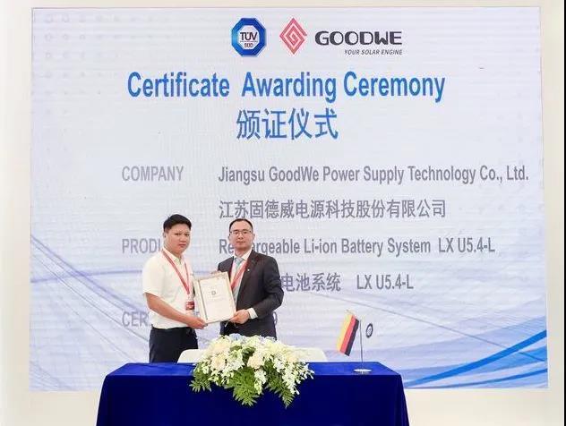 ▲固德威儲能電池獲得TUV南德頒發(fā)的IEC62619證書