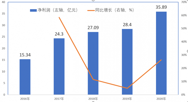 2016年,三峽能源歸屬母公司股東凈利潤15.34億元,2020年達到了35.89億元,4年年間增長了134%。