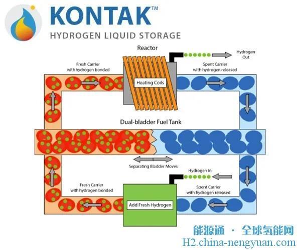 Kontak是一家位于美國(guó)西雅圖的早期技術(shù)公司,它已經(jīng)申請(qǐng)了一種新的儲(chǔ)氫技術(shù)的專利,該方法通過化學(xué)方式將氫與液體載體結(jié)合,并在需要時(shí)安全地釋放。
