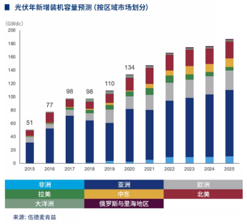 美國市場方面,大型集中式光伏電站的建設(shè)計(jì)劃基本未受疫情影響,但遲遲未撤銷的居家令導(dǎo)致戶用與非戶用光伏裝機(jī)容量的增長相較于疫情前的增長水平而言較為平穩(wěn),這是由于新冠疫情的限制使得光伏項(xiàng)目的建設(shè)更加復(fù)雜,而當(dāng)?shù)卣膮^(qū)劃管制則推遲了光伏項(xiàng)目的建設(shè)進(jìn)度。然而,即使是在分布式光伏領(lǐng)域,安裝商們也在很大程度上通過線上銷售和許可平臺的形勢,取得較好發(fā)展。中東地區(qū)的光伏市場發(fā)展仍然集中于激烈的電價(jià)競爭和自上而下的大型集中式光伏電站采購,且該地區(qū)的光伏產(chǎn)業(yè)仍在努力發(fā)展。北非與南非市場未來五年的新增裝機(jī)容量將占整個非洲市場新增裝機(jī)容量的一半以上,但新興市場正在縮短項(xiàng)目建設(shè)周期,減少儲備項(xiàng)目積壓。伍德麥肯茲已在中東與非洲地區(qū)跟蹤超過1吉瓦的工商業(yè)項(xiàng)目。