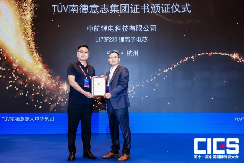 中航鋰電旗下型號(hào)為L(zhǎng)173F230鋰離子電芯產(chǎn)品獲TüV南德安全認(rèn)證證書(shū)