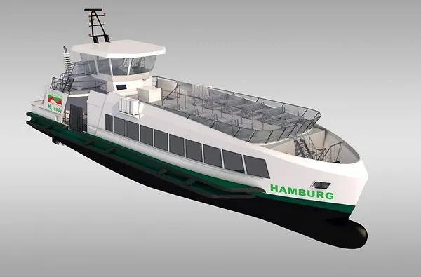 新船舶的概念是盡可能完全避免排放,特別是溫室氣體。所以在設(shè)計(jì)時(shí),效率也是一個(gè)優(yōu)先考慮的因素。為了減少能源消耗,新的HADAG渡輪長約33米。乘客在上船時(shí)不會(huì)直接進(jìn)入內(nèi)部或外部樓梯,而是首先進(jìn)入一個(gè)大的外部甲板,乘客可以從那里分流,幫助旅客更快上下船,從而減少燃料消耗。目前HADAG計(jì)劃再增加兩艘全新氫混合動(dòng)力船舶。