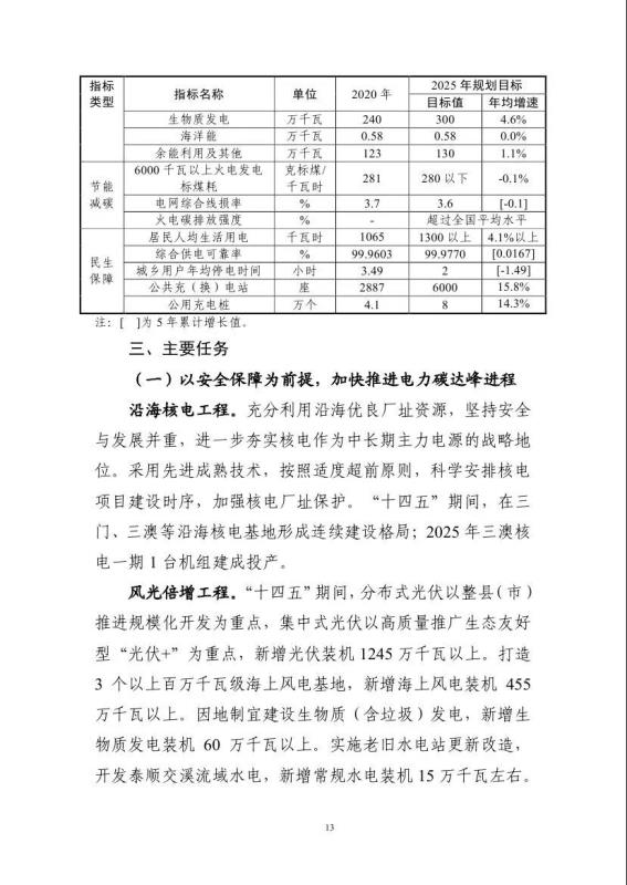 科學(xué)開(kāi)發(fā)抽水蓄能電站,加快長(zhǎng)龍山、寧海、縉云、衢 江、磐安等項(xiàng)目建設(shè),新增裝機(jī) 340 萬(wàn)千瓦;推動(dòng)泰順、天臺(tái)等項(xiàng)目開(kāi)工建設(shè);適時(shí)啟動(dòng)建德、桐廬等站點(diǎn)前期工作;完成新一輪抽水蓄能電站選點(diǎn)規(guī)劃;開(kāi)展混合型(中小型) 抽水蓄能電站建設(shè)。