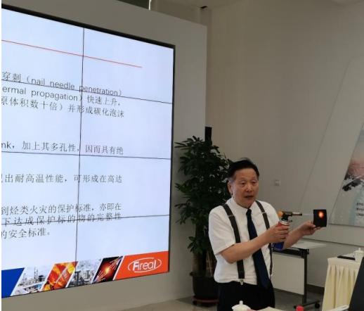會議開始,公司首席科學(xué)家賈緯民博士以“被動防火PFP在儲能安全領(lǐng)域的應(yīng)用”為調(diào)研團專家做主題分享。