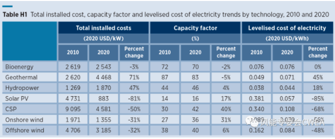 一圖看懂《2020年可再生能源發(fā)電成本》報告