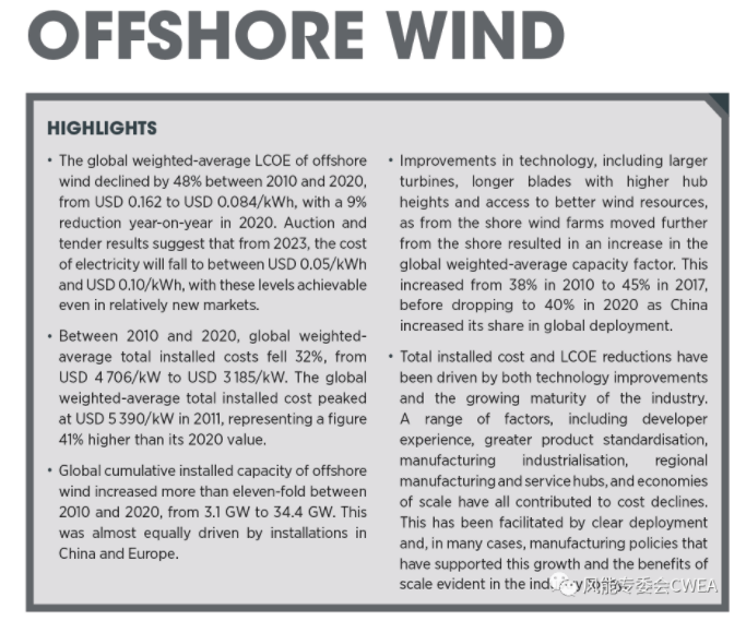 有關(guān)可再生能源發(fā)電成本,其他亮點包括:
